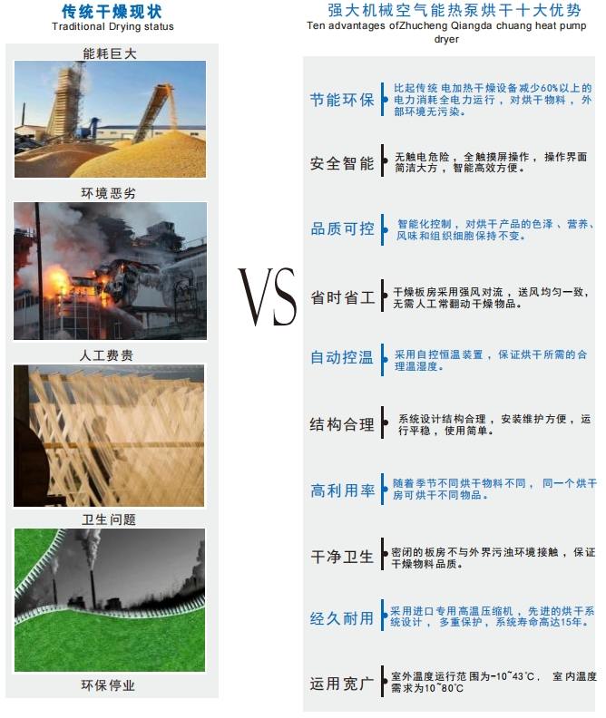 物及排放物。是一种可持续发展的环保型能源。能源运行安全可靠,使用寿命长,维护费用低, 能源工艺技术成熟,性能稳定可靠全 自动免人工操作, 智能化控制。空气能热泵适用范围广,不受气候影响,可广泛适用于食品、化工、 医药纸品、木材、农副产品等行业。