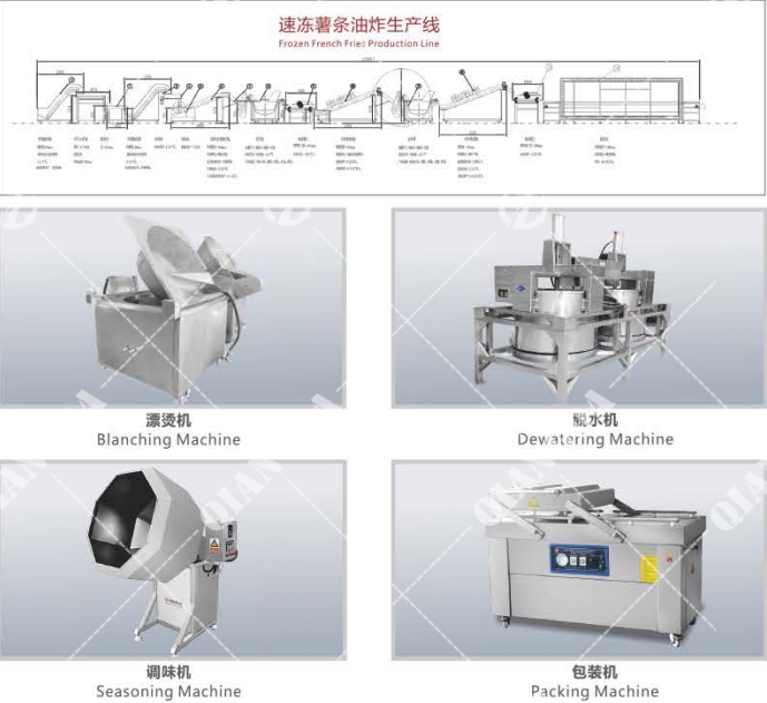 4、脱水:去除土豆表面水分。防止油炸过程中的溅油或气泡现象5、油炸:将脱水后的土豆片条进行油炸。