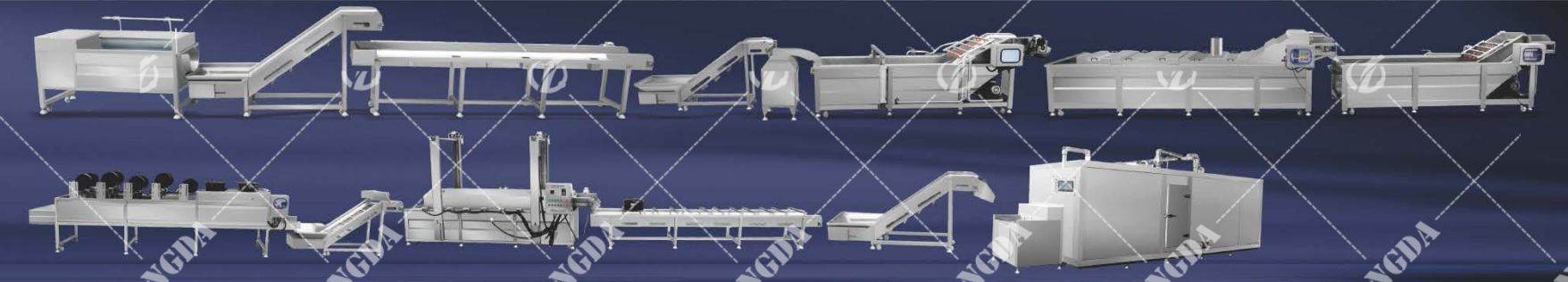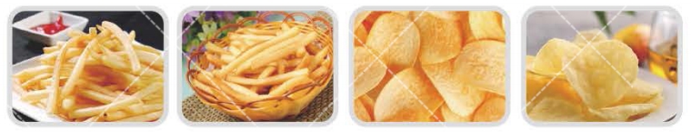 生产流程:漫泡提升入料--毛刷清洗去皮--人工挑选修剪--提升上料入切条切片机-漂洗-漂烫--冷却--沥水-高温油炸--沥油冷却--速冻--包装
